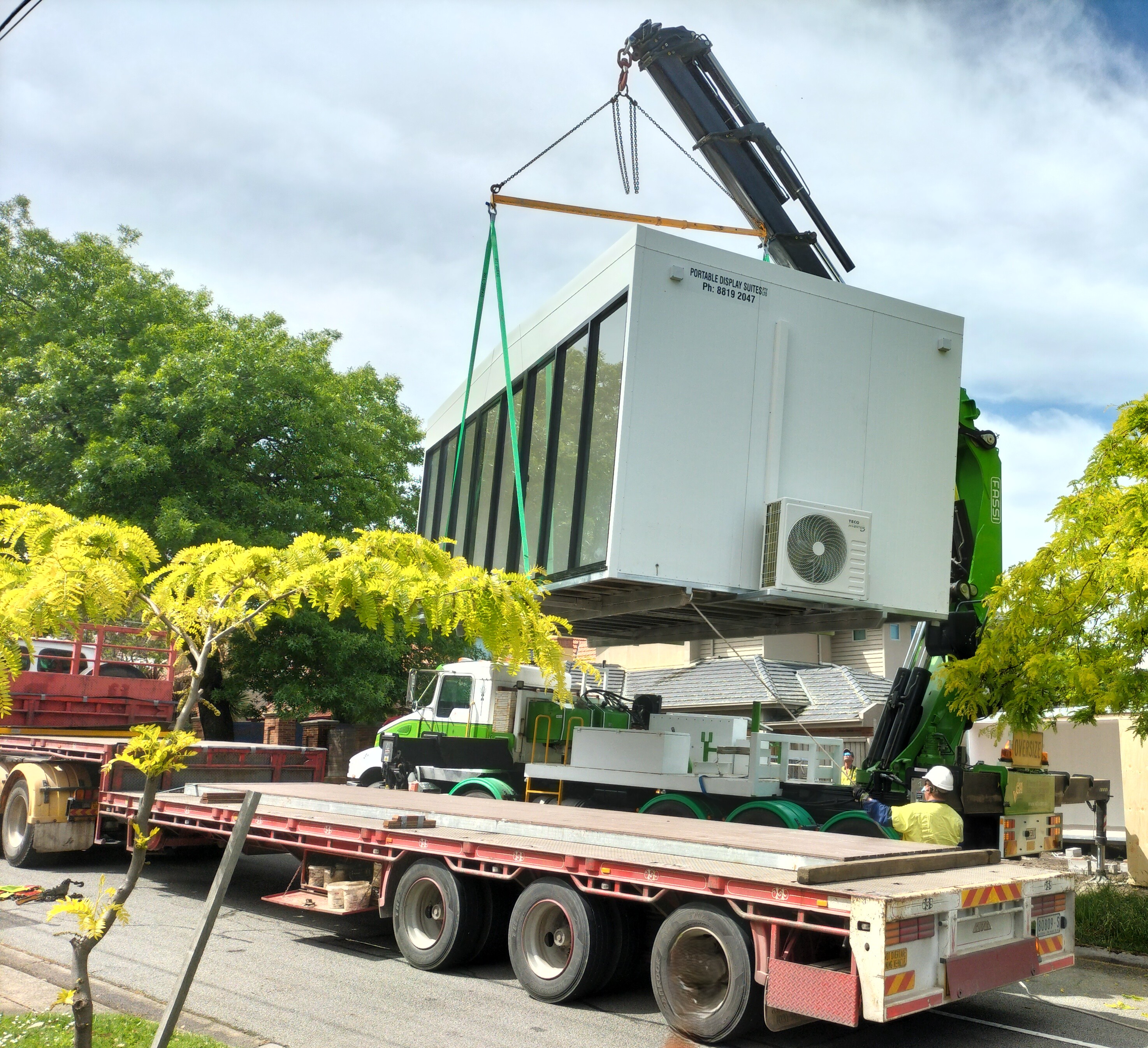 The 8.4 x 6.9m Portable Display Suites are large enough to provide a spacious open plan room to incorporate your kitchen and bathroom fit outs along with free standing project models and marketing materials.